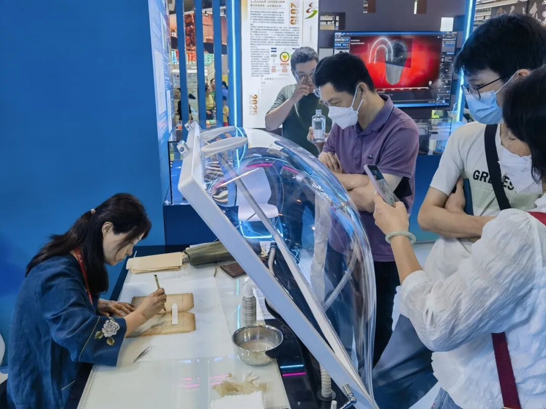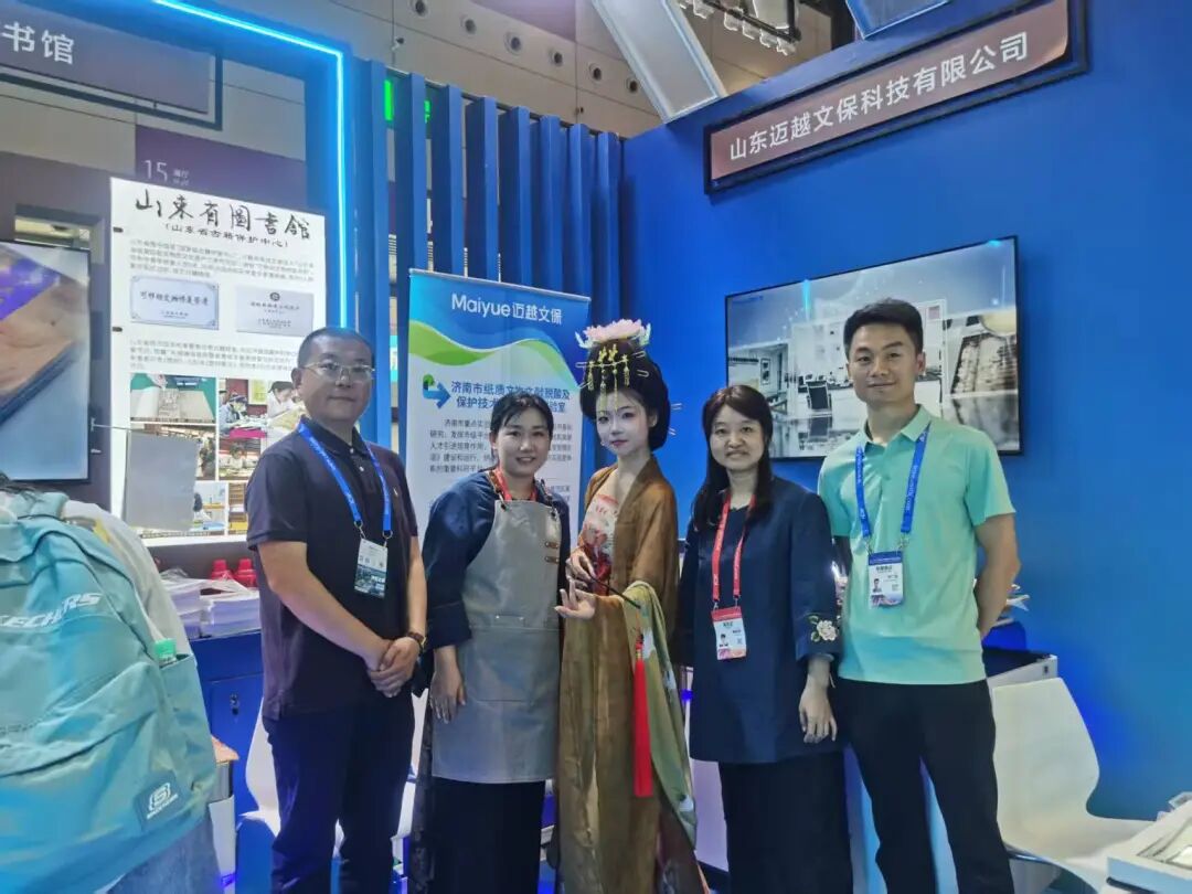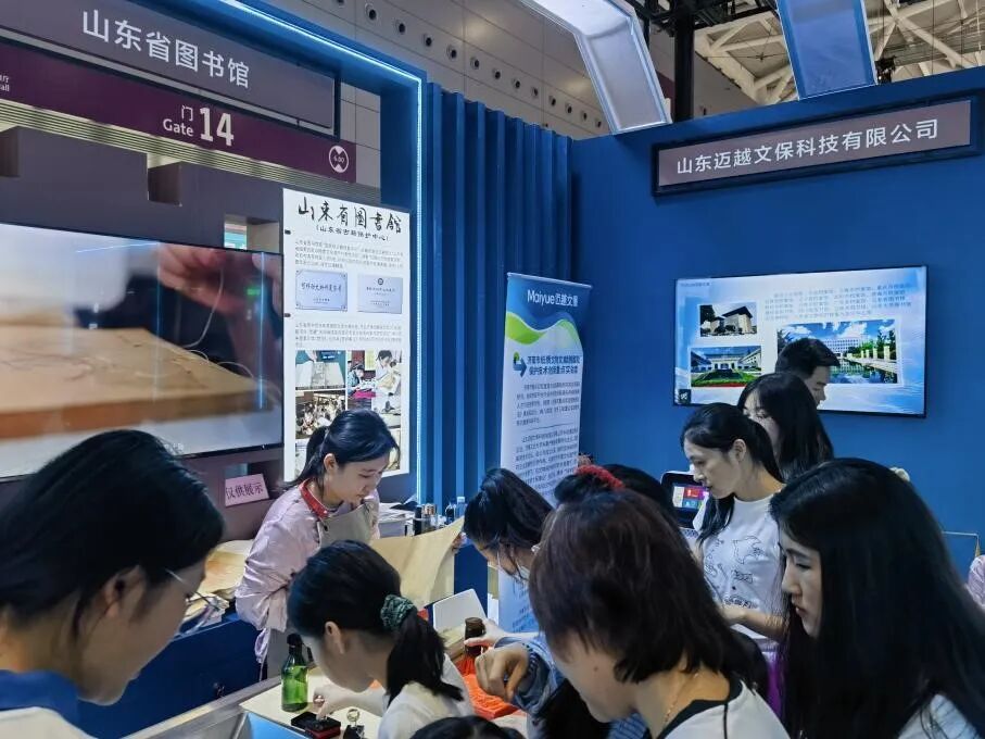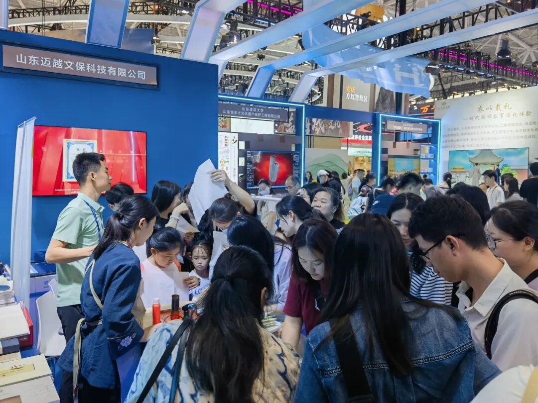 第二十一届中国(深圳)国际文化产业博览交易会(简称“文博会”)于2025年5月22日至26日在深圳国际会展中心成功举办,主题为“创新引领潮流,创意点亮生活”。本届文博会全面贯彻习近平文化思想,紧紧围绕探索文化和科技融合的有效机制,重点突出博览功能,不断提升国际化、市场化、专业化,持续激发文化创新创造活力。山东迈越文保联合山东省图书馆携古籍修复技艺与纸张保护修复设备亮相文博会山东展区。共同演绎现代科技赋能传统文化遗产保护,持续输出具有山东特色的文保力量。 迈越文保本次参展主题是“科技赋能古籍保护与修复”,从分析检测、病害调查、纸张脱酸、智能修复等方面提升文物科技保护水平和研究深度,契合了“创新引领潮流,创意点亮生活”的展会主题,彰显了对传统文化的弘扬和现代科技的应用。展会期间集中展示了“纸浆补书机”、“多功能修复台”、“喷雾脱酸机”以及“安书镁非水分散体系脱酸液”等自主研发制造的科技产品,得到了媒体的深入报道与参展观众的广泛好评。 本次展会,在科技硬实力的加持下,文化内容生产呈现出全新模式,为文化创新输出引入强大势能。迈越文保始终践行的“科学保护与修复”理念,立足中华民族优秀传统文化遗产保护的需求,沿着文化与科技的深度融合方向,专注于纸质文献保护与修复领域,向档案、图书、文博等行业及高校科研院所提供包括研发、设计、制造、咨询和服务的全方位综合解决方案。