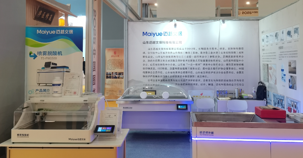 2025年9月4日至6日,2025年中国图书馆年会暨中国图书馆展览会在陕西省榆林市隆重召开。迈越文保携多项创新成果亮相年会。 为了深刻响应此次年会主题“高质量发展:面向未来的中国图书馆事业”,迈越文保重点展出了纸浆修补机、桌面式喷雾脱酸机、除尘除霉工作台等核心产品,吸引了众多参会领导、专家学者、图书馆从业者的关注。